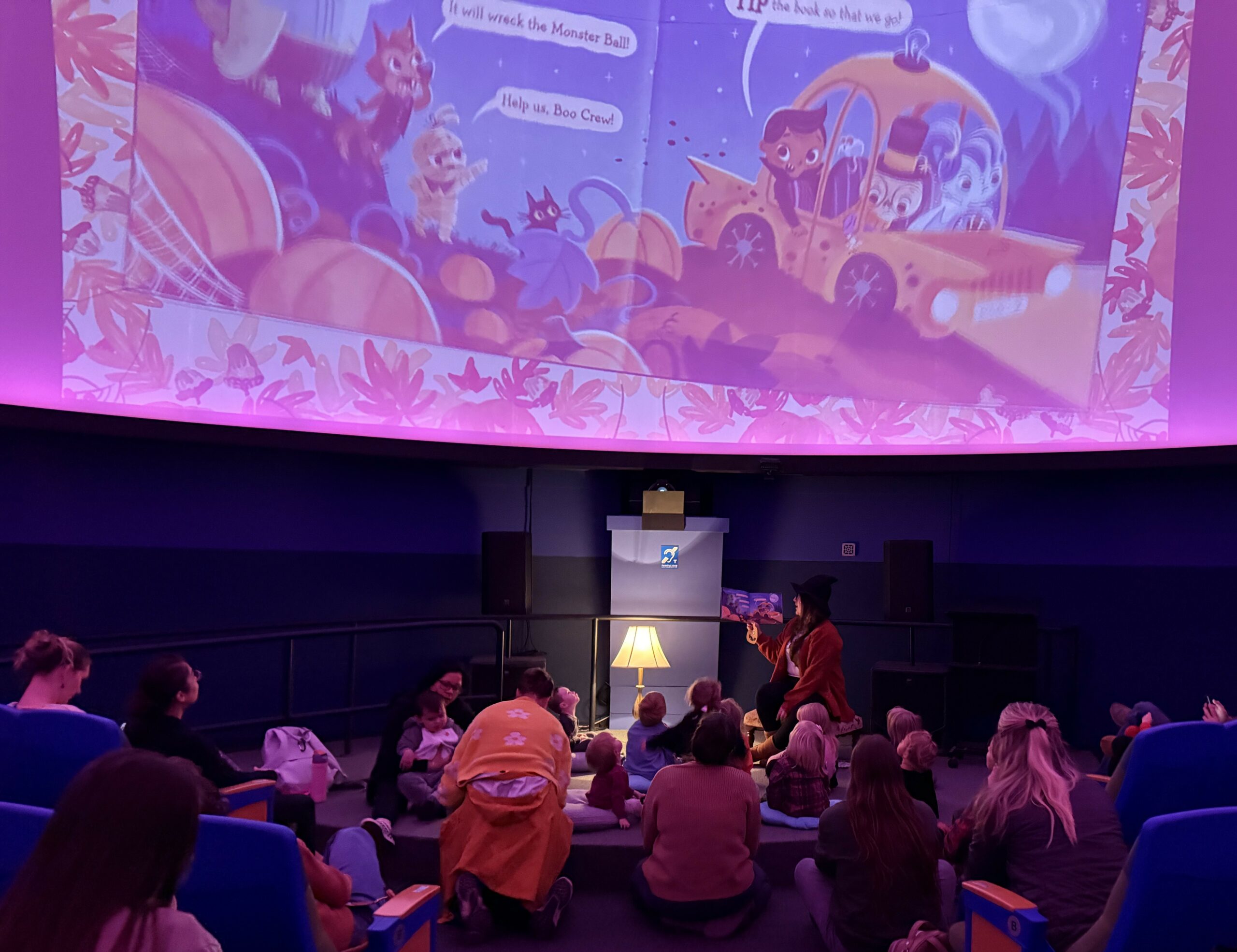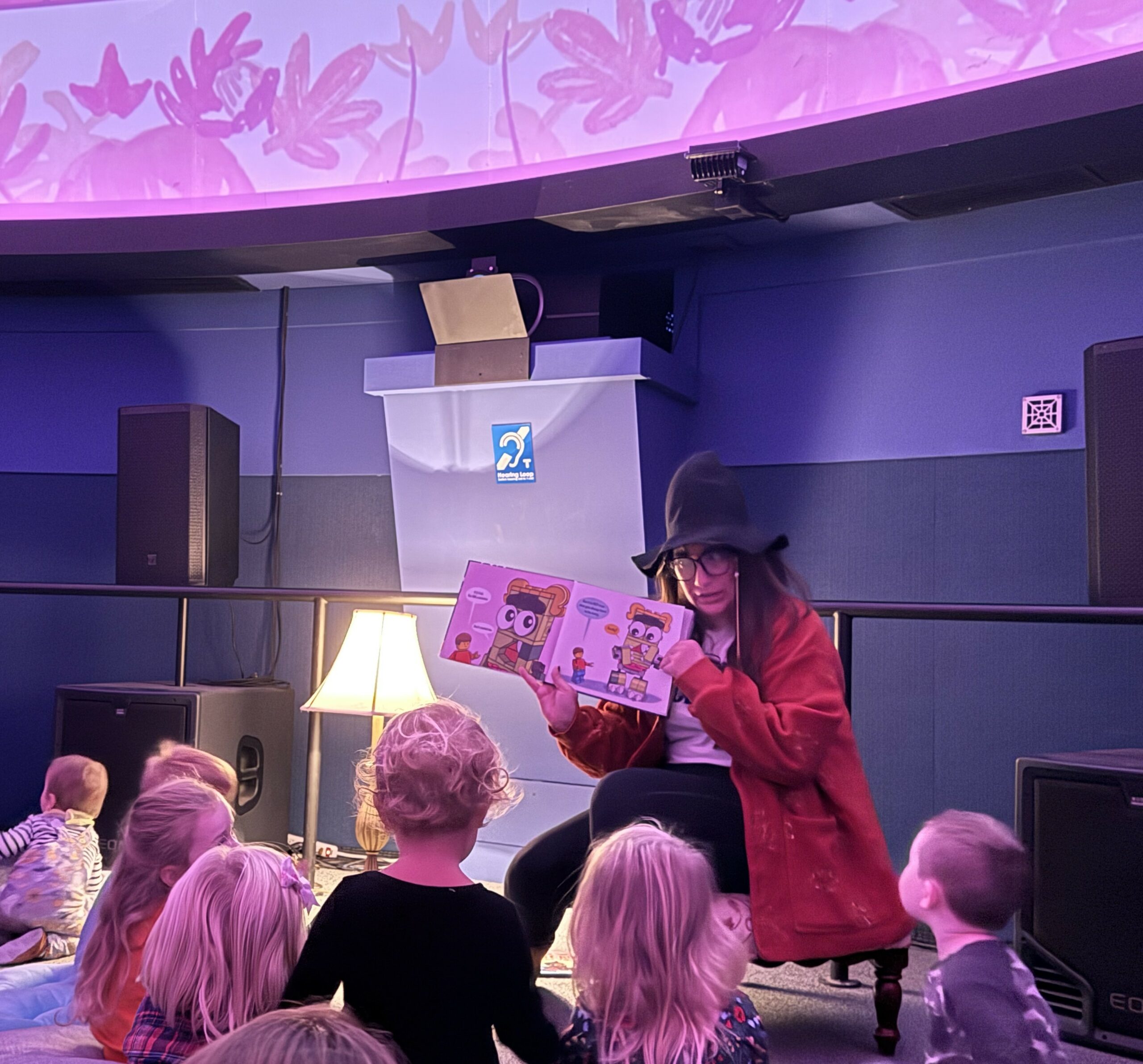Tot Day now includes preschool aged story telling in the cozy planetarium with Miss Alex, our Education Manager. Join Miss Alex for fictional stories and engaging narration of STEAM themes that integrate with the Tot Day topic. Cushions are provided up on the planetarium stage for toddlers to sit close to the story telling action. Prefer to sit in a comfy seat with the family? No worries with our large projections of the story book up on the planetarium ceiling, you won’t miss a single detail. Tot Time Tales is included with your Tot Day admission.